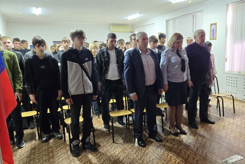 Со студентами первого курса встретились сотрудники ОМВД России по Майскому району, представитель Общественного совета при Отделе Казбек Хапов и председатель Совета ветеранов ОВД Майского района Дмитрий Шлык.