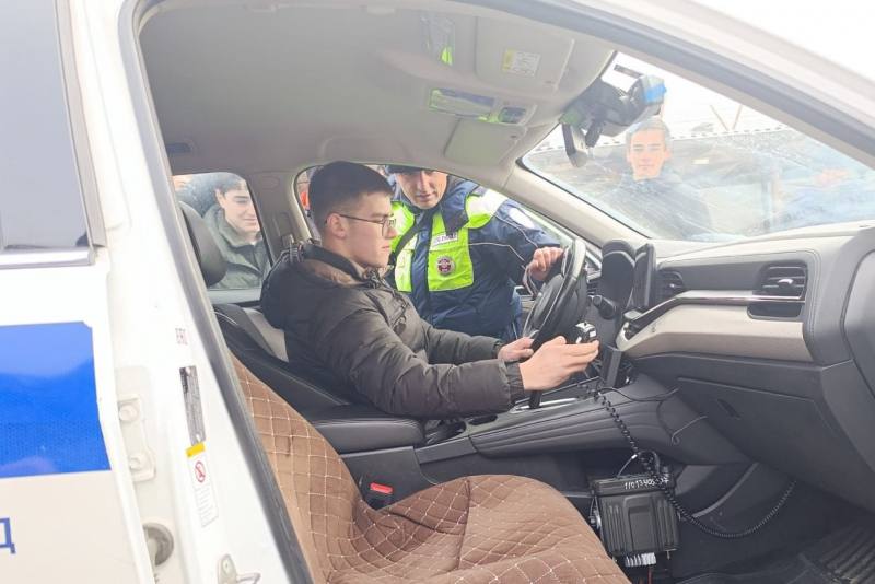 Полицейские показали и рассказали как оборудован патрульный автомобиль. Ребята смогли представить себя в роли водителя патрульного автомобиля, использовать специальное громкоговорящее устройство и самостоятельно включить проблесковые маячки.