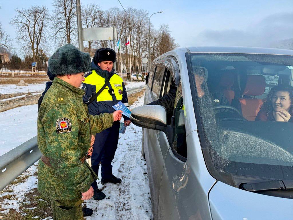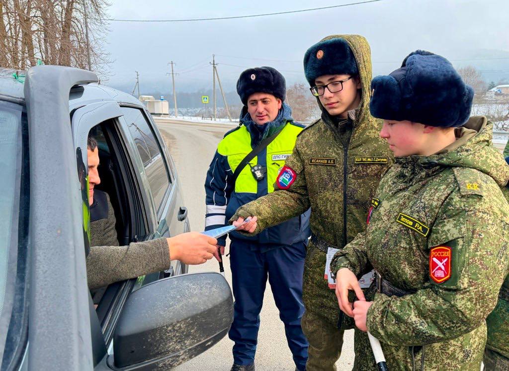 Сотрудники Госавтоинспекции вместе с руководителем «Кадетской школы – интернат №2 имени Х.С.Депуева» Ахматом Бозиевым, педагогами, кадетами и юными инспекторами движения организовали профилактическое мероприятие, направленное на повышение внимания водителей при управлении транспортным средством в сложных погодных условиях.
