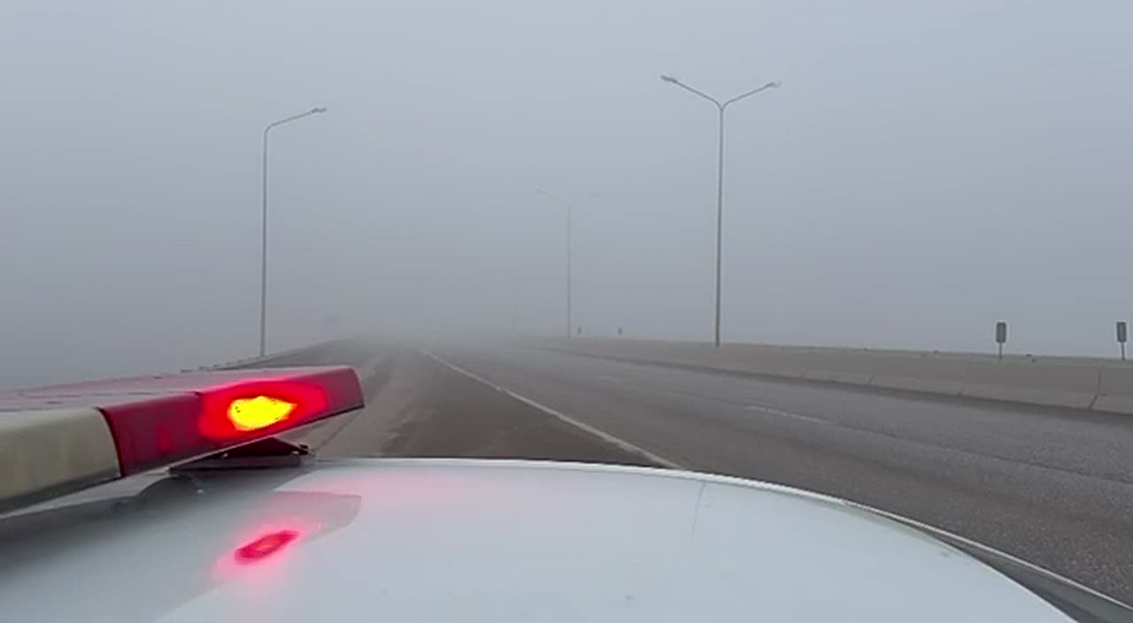 На отдельных участках автодорог наблюдается образование густого тумана.