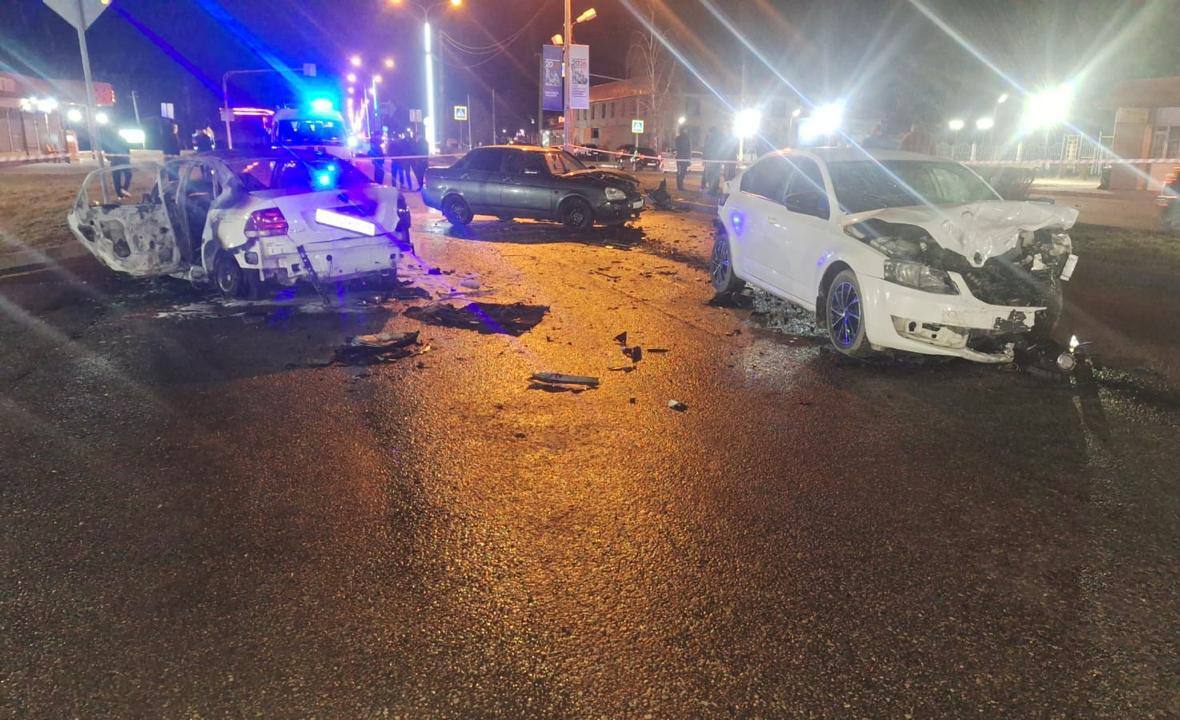 По предварительным данным, 15 февраля около часа ночи, 38-летний водитель автомашины «Volkswagen», двигаясь по федеральной автодороге «Кавказ» в Чегемском районе, не справился с управлением, допустил наезд на стол ЛЭП и выехал на встречку полосу, где столкнулся с автомобилями «koda» и «Лада Приора».