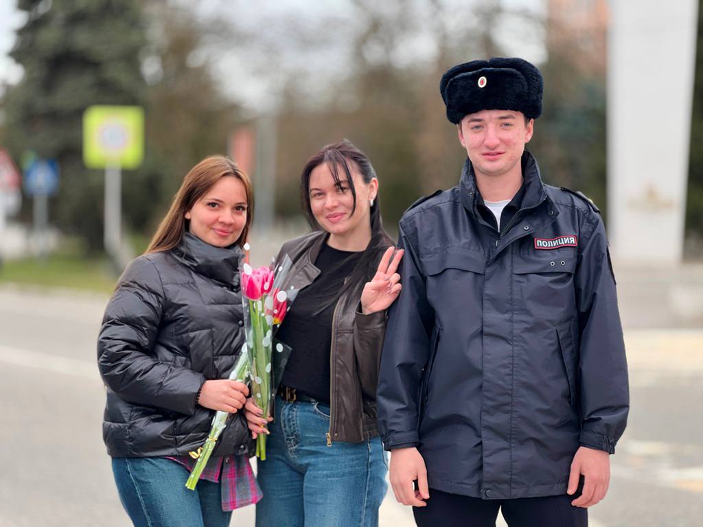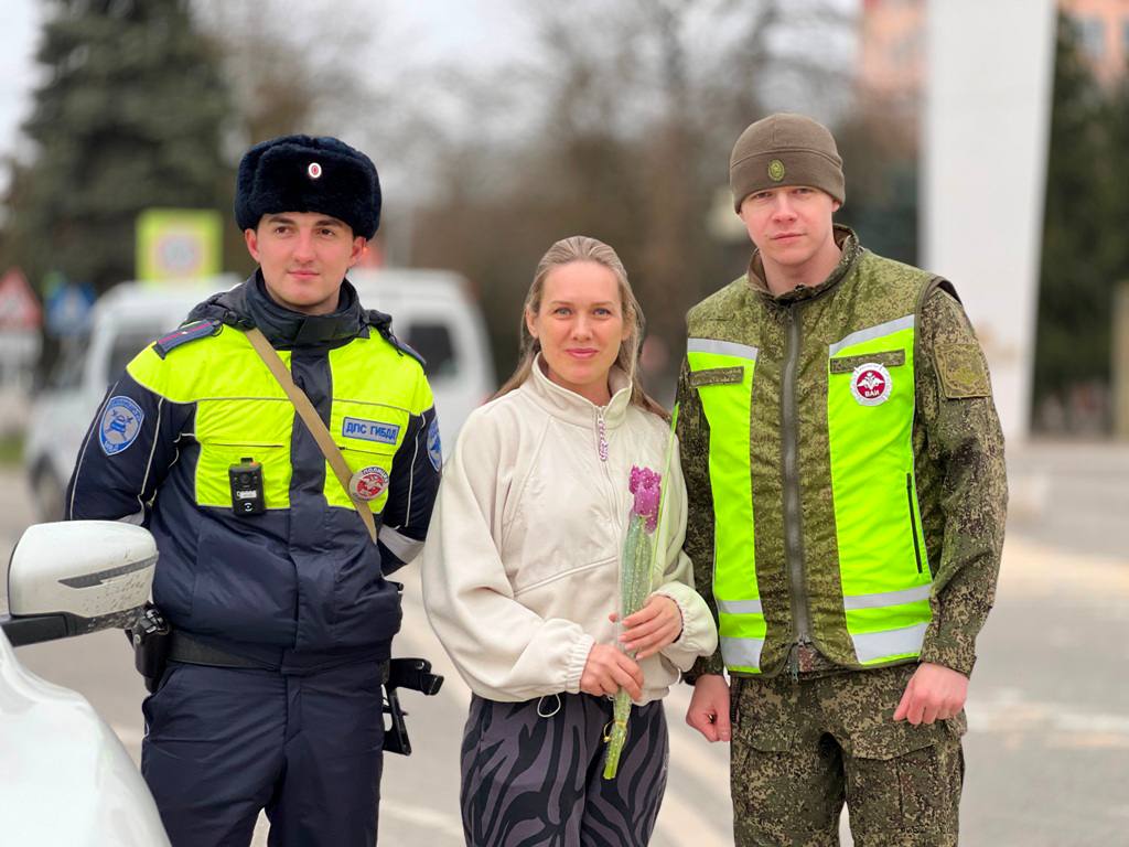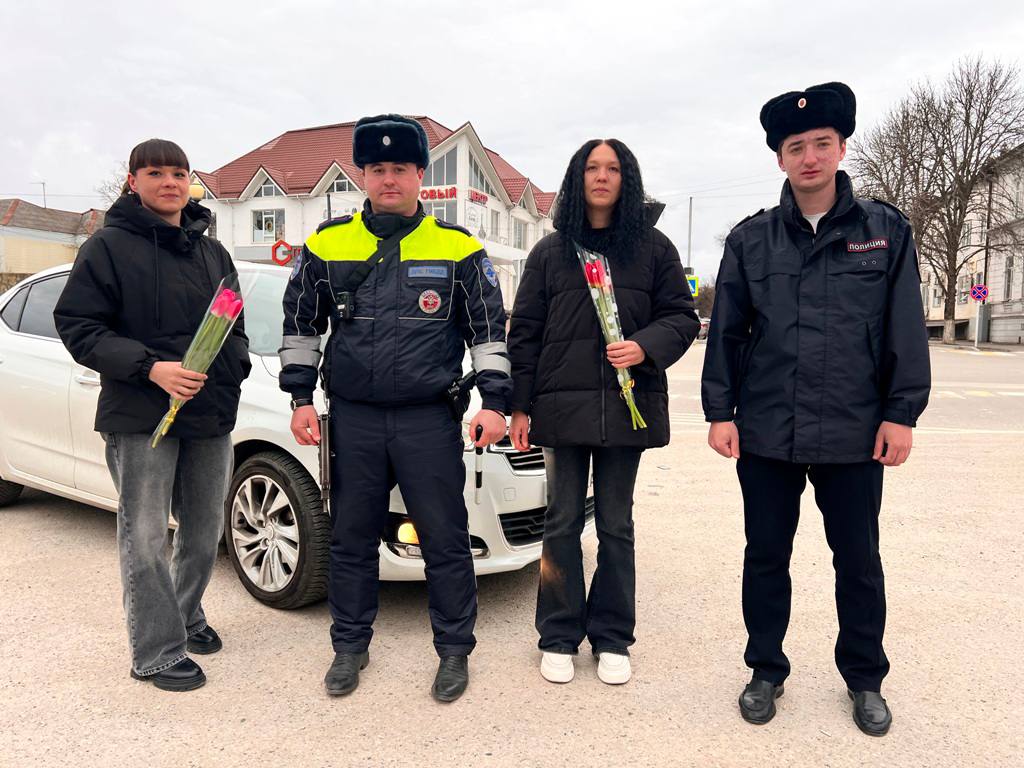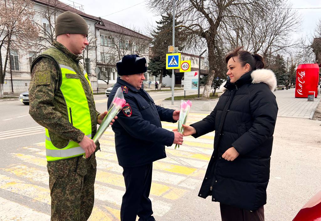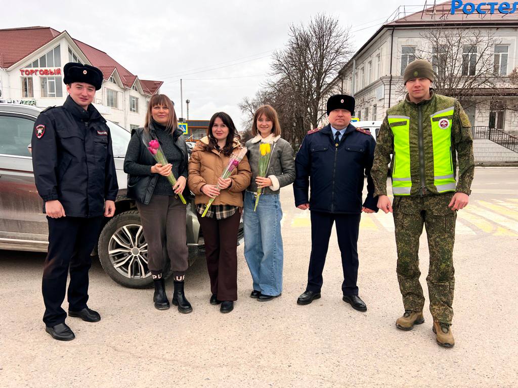 Накануне Международного женского дня сотрудники Госавтоинспекции МО МВД России «Прохладненский» вместе с военнослужащими 128 военной автомобильной поздравили прекрасных представителей женского пола с 8 марта.
