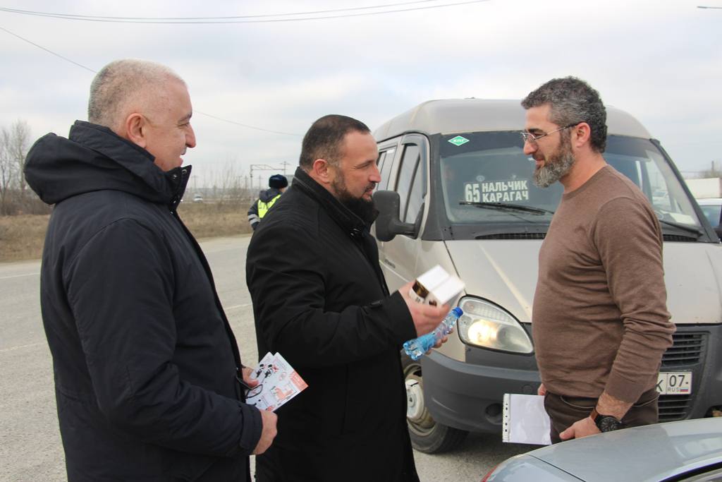 Вместе с сотрудниками республиканской Госавтоинспекции к водителям обратились заместитель председателя Духовного управления мусульман Алим Сижажев, председатель Общественного совета при МВД по Кабардино-Балкарской Республике Руслан Макушев и руководитель региональной общественной организации «Общество русской истории и культуры «Вече», член Общественной палаты КБР, председатель Благотворительного Фонда «Мир, где добро!» Роман Литвинов.