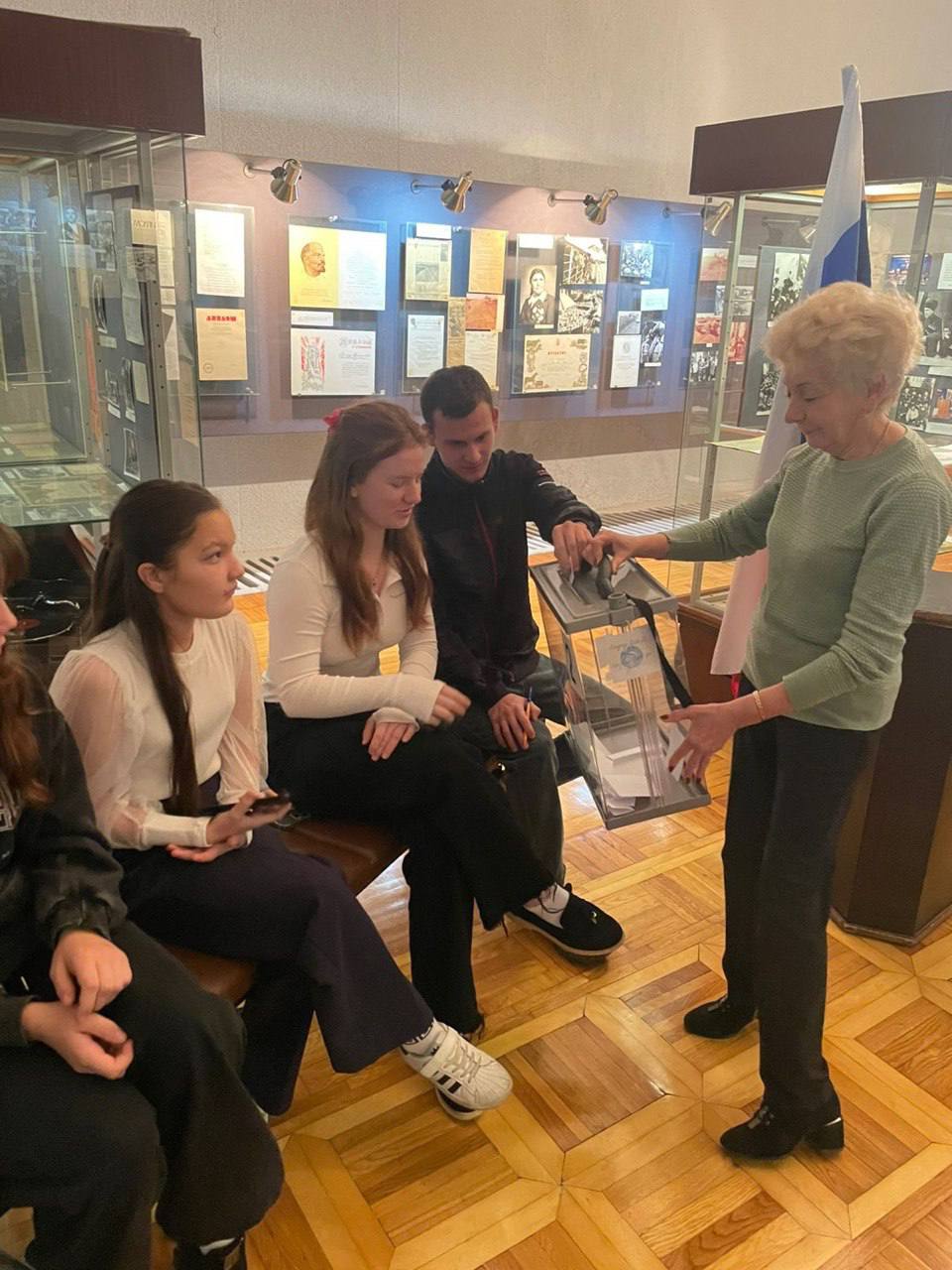 Директор музея - заместитель председателя УИК № 94 Татьяна Хрячкова и депутат Совета сельского поселения Таисия Сухинина провели с учащимися 10-11 классов МКОУ «СОШ № 8 ст.Котляревской»деловую игру по выборам депутатов Совета местного самоуправления, цель которой была направлена на расширение и углубление знаний старшеклассников о местном самоуправлении.