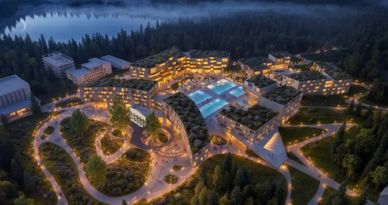 Тут появятся: санаторно-курортный комплекс с гостиницей 21,1 тысячи кв.м, апарт-отелем на 360 мест, медцентр на 450 мест, аква-термальный комплекс почти 3,4 тысячи квадратов, фитнес-центр, ресторан и торговые площади, а также общественные пространства и парковые зоны.