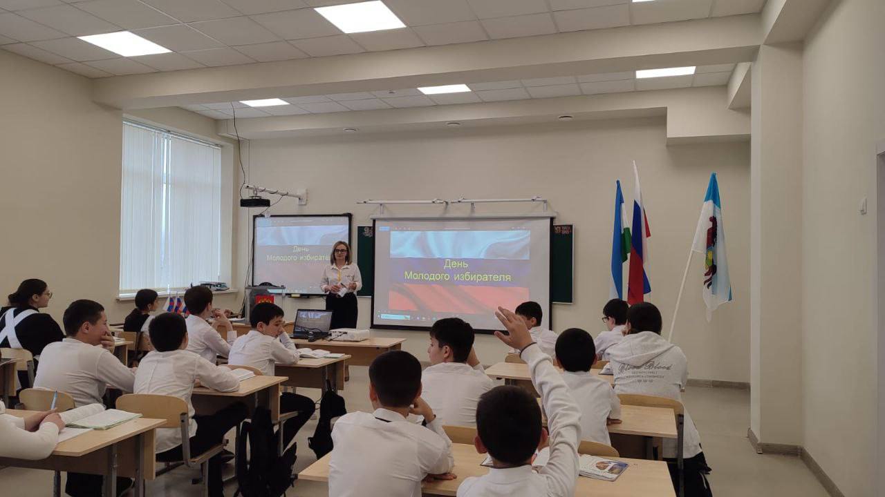 В рамках «Дня молодого избирателя» в МКОУ «СОШ 1» с.п. Сармаково, учитель истории и обществознания Хажкасимова И. В. провела час молодого избирателя- «Я - будущий избиратель», в присутствии председателя УИК N56 Лигидова Р.А.