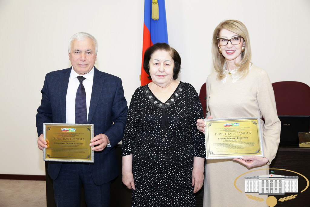 Прежде чем приступить к обсуждению повестки дня, Председатель рескома профсоюза работников государственных учреждений и общественного обслуживания Фаина Бакова вручила Почетную грамоту Кабардино-Балкарской республиканской организации профсоюза работников государственных учреждений и общественного обслуживания за многолетний добросовестный труд, высокий профессионализм, большой вклад в развитие сотрудничества и активную работу по защите прав и законных интересов членов профсоюза в коллективе, конструктивные отношения для укрепления взаимодействия с профсоюзом в сохранении сложившихся деловых отношений на благо интересов человека труда в республике Председателю Парламента КБР Татьяне Егоровой и заместителю Председателя Парламента КБР Салиму Жанатаеву.
