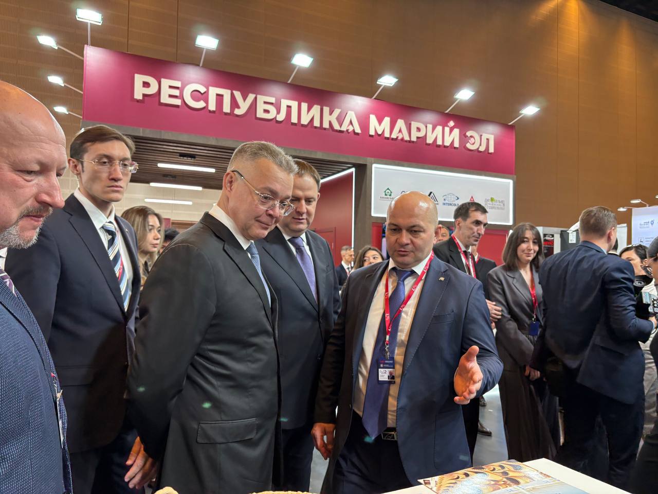 Заместитель министра промышленности и торговли РФ Иван Куликов и губернатор Ставропольского края Владимир Владимиров ознакомились с экспозицией выставки.
