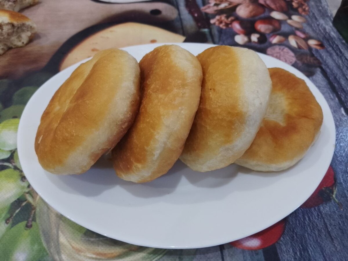 Когда тесто подойдет, его делят на равные колобки, которые раскатывают в небольшие кружки. На каждый круг кладут начинку, собирают края и плотно защипывают, формируя пирожки. Далее разогревают сковороду и обжаривают пирожки до золотистой корочки, под крышкой, чтобы они полностью пропеклись.