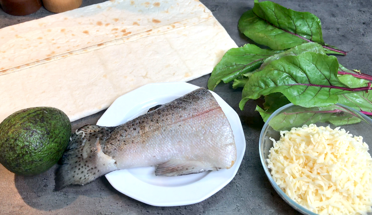- Красная рыба (например, форель, но можно использовать и ветчину)