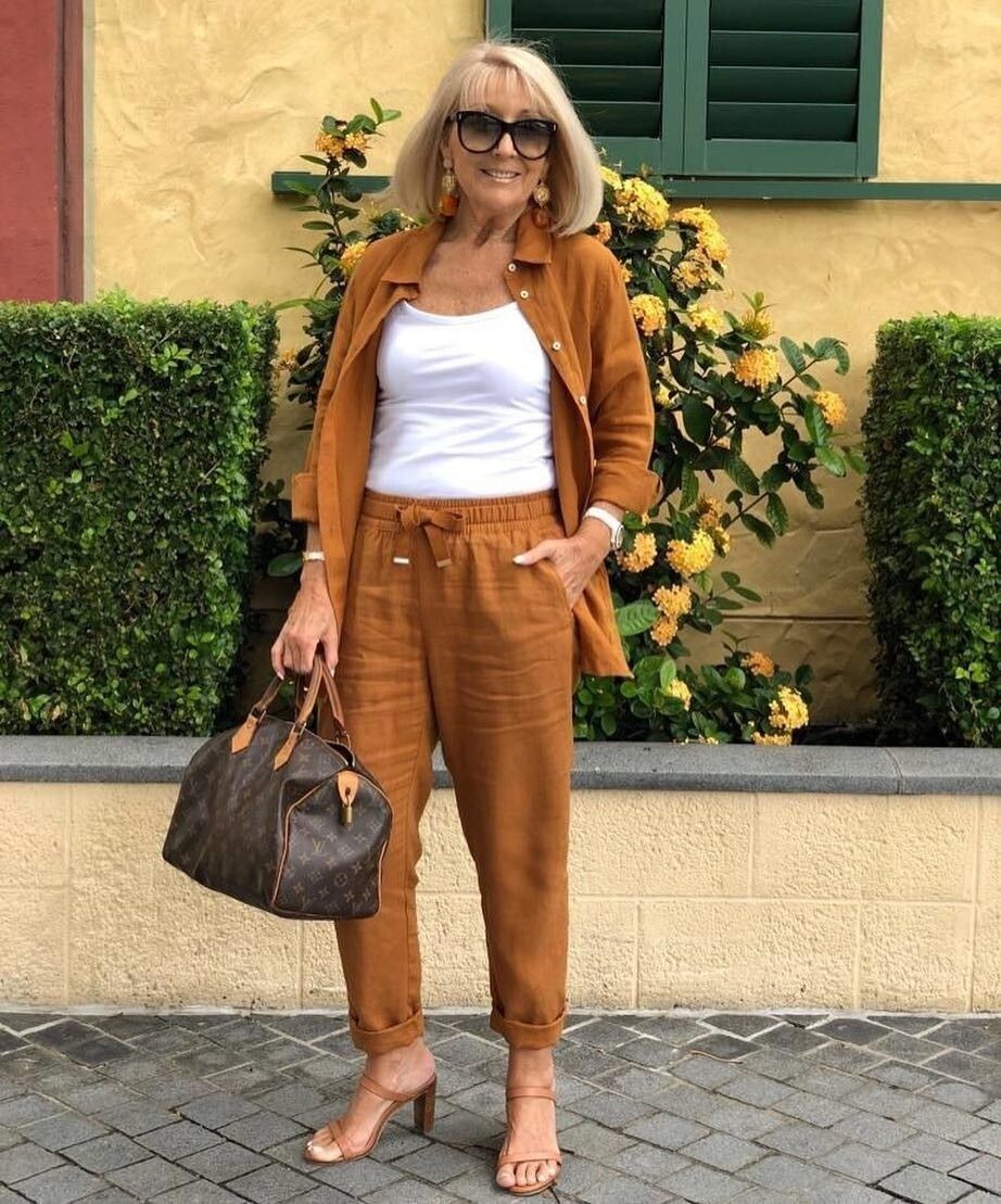 В моде летнего сезона 2025 года коричневый цвет занимает центральное место. Его теплая гамма подходит для создания образов, которые излучают роскошь и гармонию. Каждая женщина, достигшая 50-летнего рубежа, будет выглядеть привлекательно и стильно в нарядах этого оттенка.