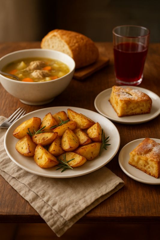Как правило, воскресный обед не обходится без картошки — запеченной, жареной или пюре. Это настоящий символ уютного стола. Запеченная картошка с чесноком и розмарином станет отличным дополнением к любому блюду. Для этого нужно просто нарезать клубни на крупные дольки, сбрызнуть их оливковым маслом и запекать в духовке при 200°C около 35–40 минут.