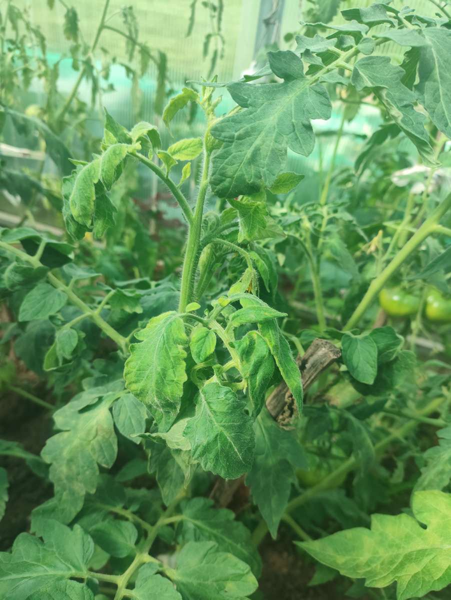 Скручивание листьев — это защитный механизм помидоров в ответ на неблагоприятные климатические условия. В июле, когда температура воздуха преодолевает отметку 30°C, происходит интенсивное испарение влаги с поверхности листьев. Если корневая система не успевает восполнять жидкость, листья начинают скручиваться, уменьшая площадь испарения.