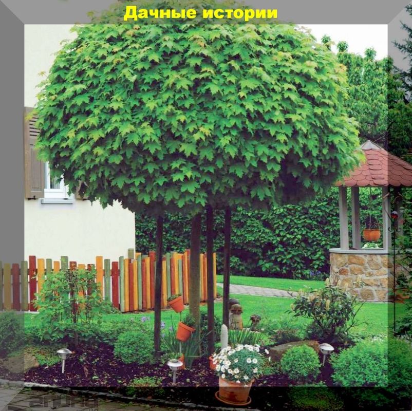 - Клен остролистный Globosum – это шаровидное дерево на штамбе, которое постепенно растет до 7 метров, при этом не требует обрезки для формирования своей идеальной формы.