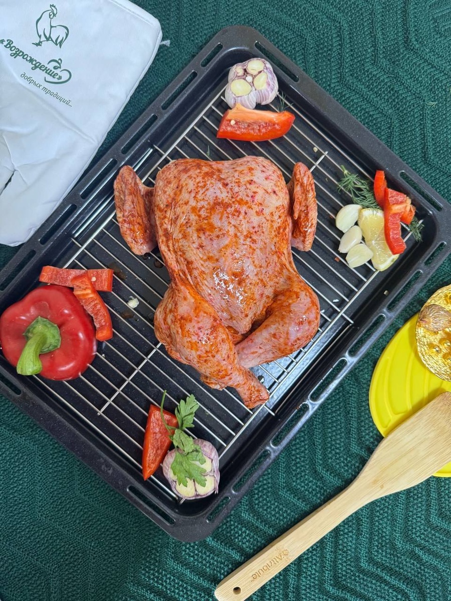 - Подготовьте противень и поместите курицу, предварительно замаринованную по вашему рецепту, на 50-60 минут.