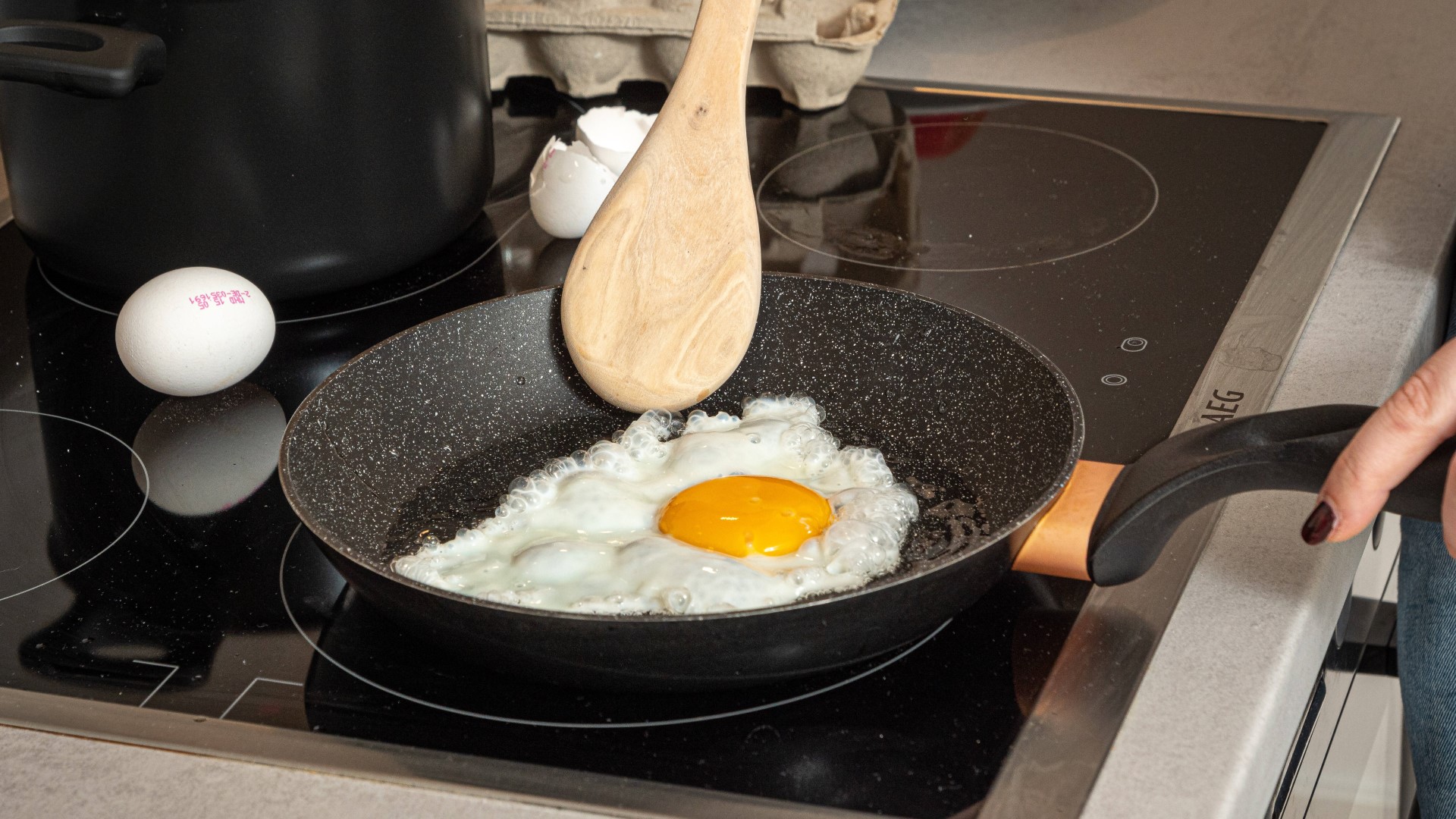 Все очень просто, вам понадобится обычная вода. Вылейте немного прозрачной жидкости на сковородку. Как только она закипит, можете разбивать туда яйцо, отмечает дзен-канал «Вкусно.ru». Тогда вы получите привычное блюдо, но без дополнительных калорий и жира.