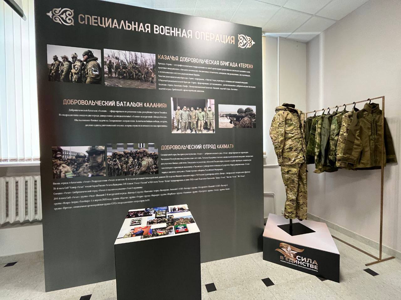 На выставке были представлены арт-объекты, видеохроника, исторические костюмы, оружие, редкие фотографии, книги и документы, которые отражают героическое прошлое и настоящее народов Кабардино-Балкарии.