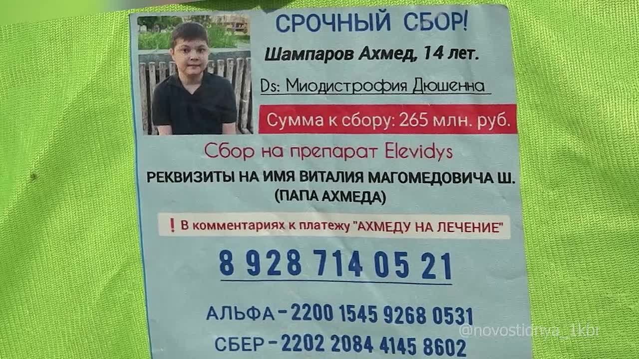 Надежда есть. Эту простую истину сегодня доказывают жители Нальчика, объединившиеся, чтобы собрать 265 миллионов рублей на лекарство для 14-летнего Ахмеда Шампарова. Мальчику с мышечной дистрофией Дюшенна необходим уникальный препарат. Чтобы помочь семье, в Нальчике волонтеры организовали сбор пожертвований в самых людных местах города, в том числе и на рынке «Дубки».