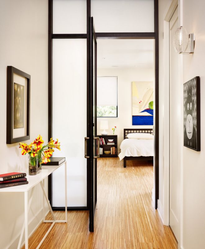 - Максимум из минимализма. Плотно используйте каждый уголок: компактные вешалки, консольные столики и подвесные полочки — ваши лучшие друзья в создании порядка и уюта. Идея встроенного шкафа под верхнюю одежду также станет настоящим находкой.
