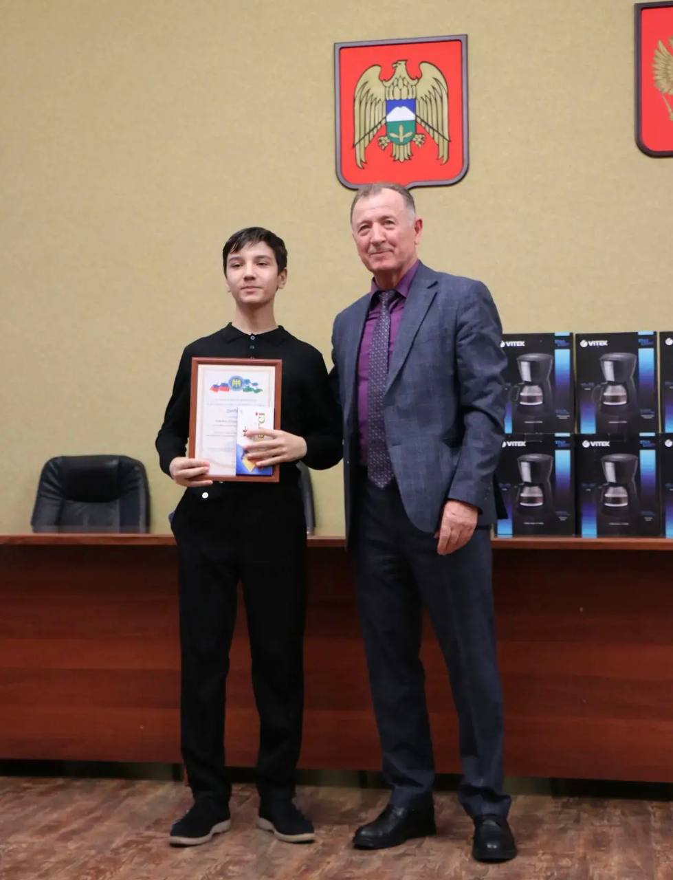 Председатель Прохладненской ТИК Али Лутов принял участие в церемонии и наградил Дипломами Избирательной комиссии КБР участников конкурса «Я расскажу вам о войне …» Кенетова Руслана, библиотека МКУК КДЦ Янтарного, и Нафоновых Индриса и Нурдина учеников МКОУ «СОШ №1» с.Карагач.