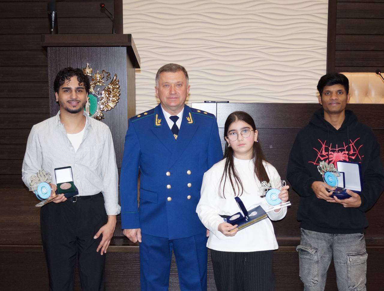 От имени Генерального прокурора Российской Федерации Александра Гуцана прокурор КБР Николай Хабаров вручил медали призерам Международного молодежного конкурса социальной рекламы «Вместе против коррупции!».