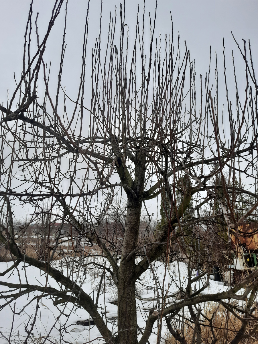 Если на ветвях, откуда растут волчки, есть свободное пространство, часть из них можно оставить, укоротив до трех почек. Другие стоит укоротить наполовину и приподнять до горизонтального положения. Летом эти ветки разветвятся и могут превратиться в плодовые, даря урожай в следующем году.