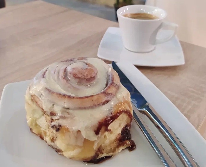 - Синнабоны: Классика всей сладкой кухни. Невозможно устоять перед его теплым, выпеченным до идеала тестом с щедрой порцией глазури.