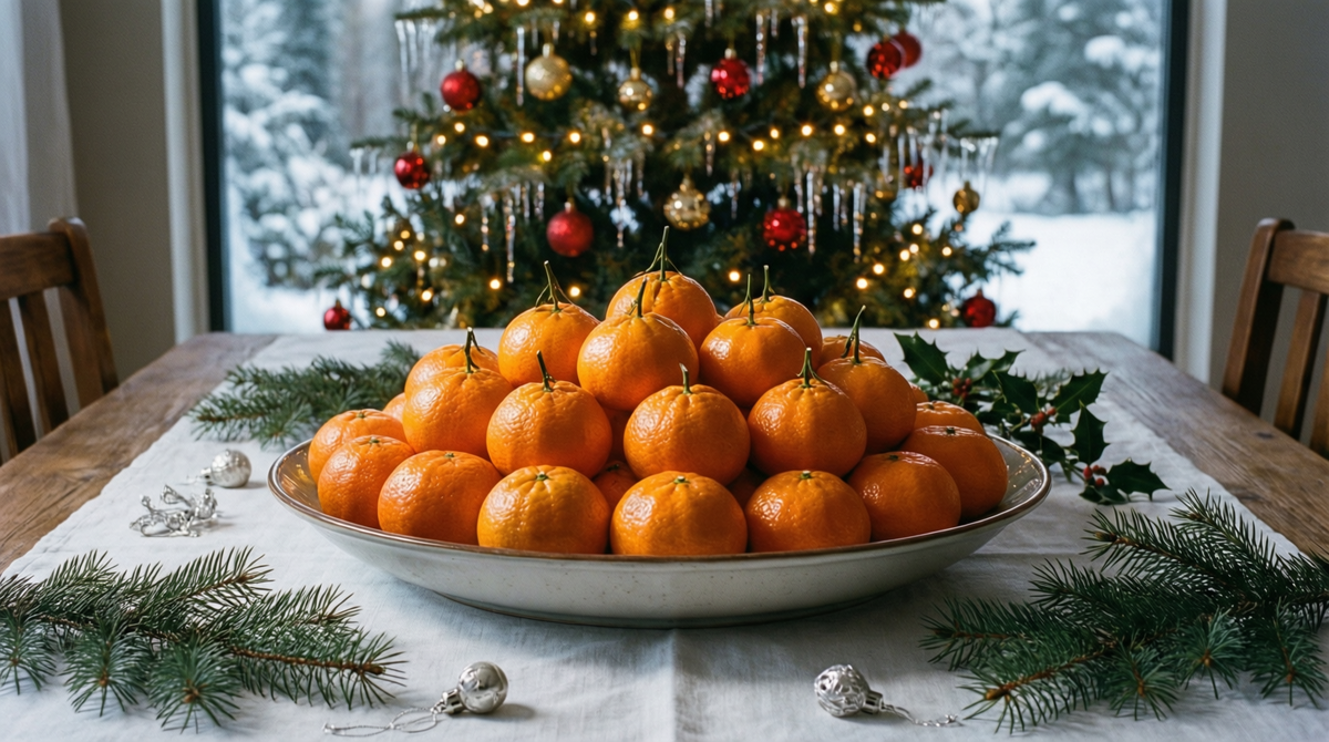 Ключевым моментом стало 1963 год, когда в СССР была впервые организована поставка мандаринов из Марокко, что позволило обеспечить их наличие прямо к Новому году. С тех пор эти цитрусы уверенно вошли в праздничную культуру. Зимой мандарины стали практически единственными свежими фруктами, что только усилило их популярность. Яркий цвет и сладкий вкус идеально подчеркивали дух праздника.