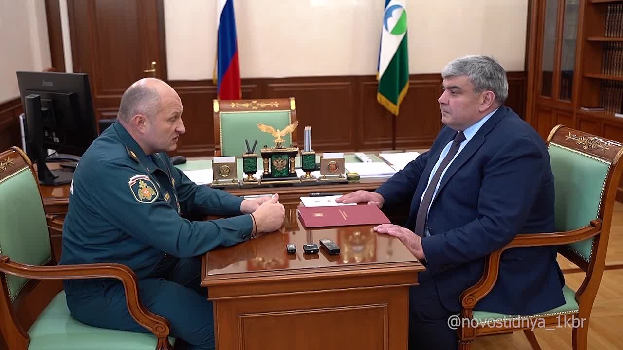 В аэропорту города Нальчика Министра РФ Александра Куренкова встречали глава Кабардино-Балкарской Республики Казбек Коков и врио начальника территориального подразделения МЧС России Эльдар...