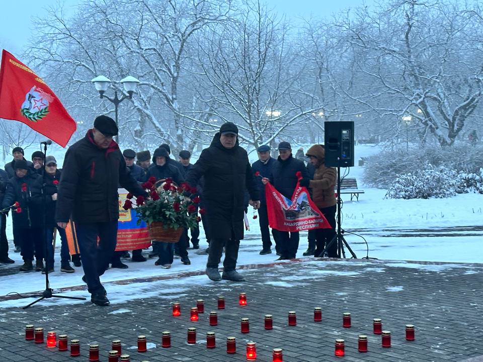 Она посвящена уроженцам Кабардино-Балкарии, павшим во время войны в Афганистане. У подножия монумента участники составили из горящих свечей цифру 54 по числу погибших уроженцев нашей республики.