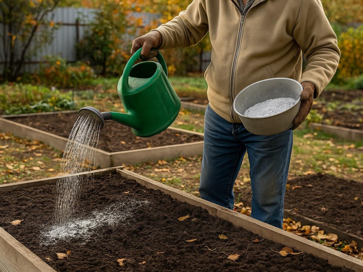 3) Полейте из расчёта 2–3 л на 1 м?. Через 5–7 дней при влажной осени можно повторить.