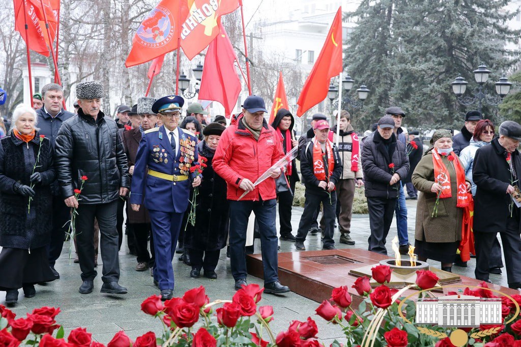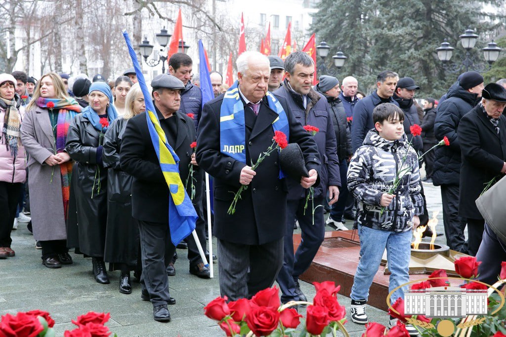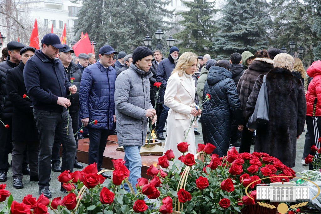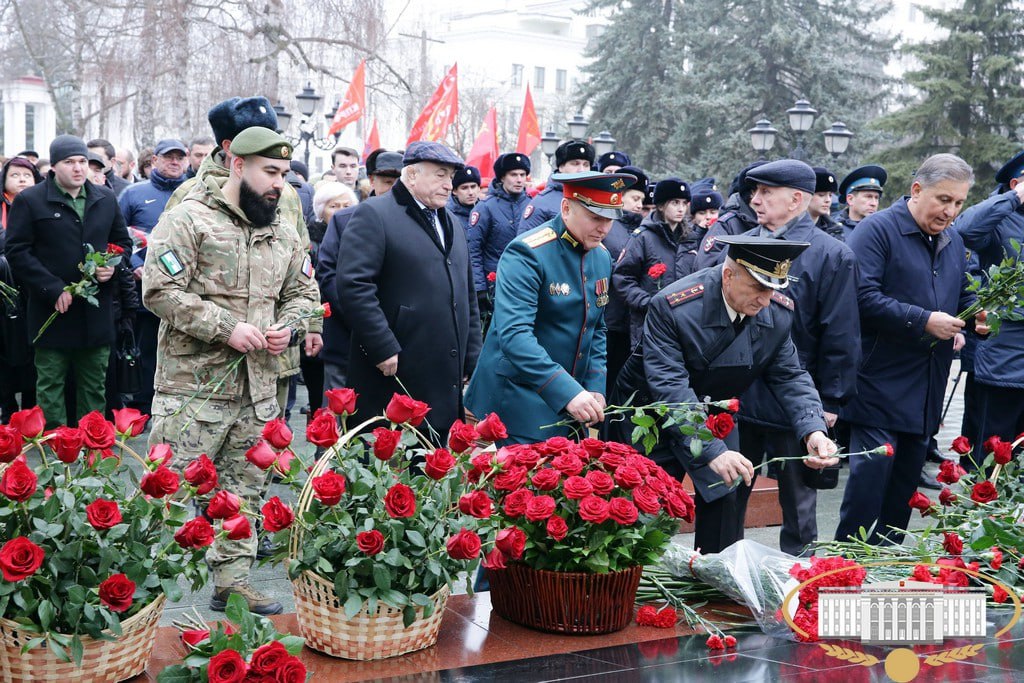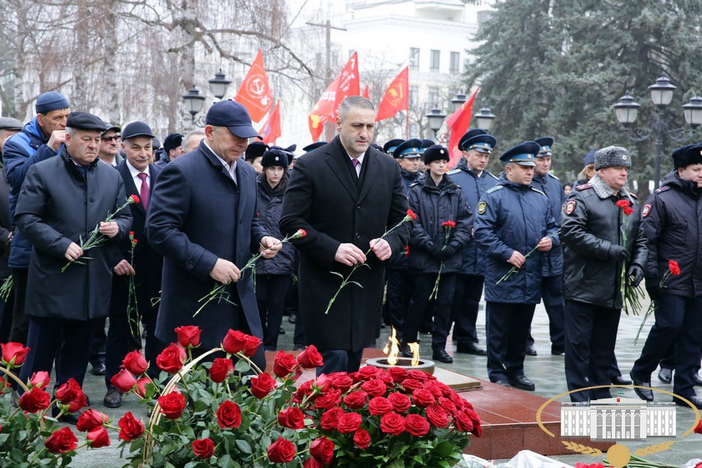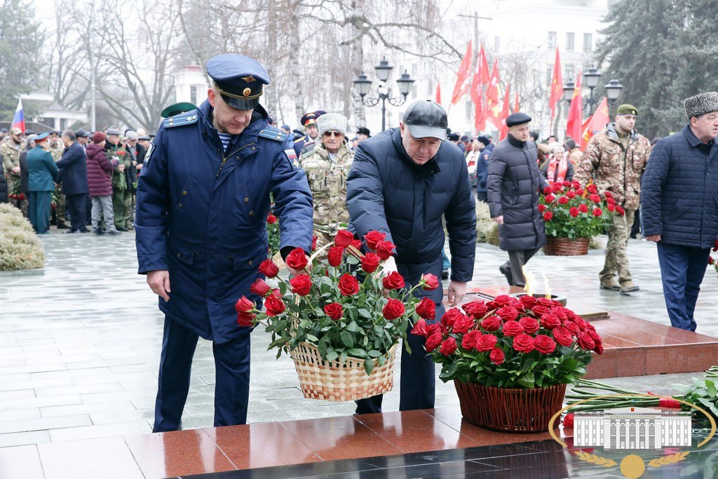 Сегодня в Нальчике состоялось торжественное возложение цветов к мемориалу "Вечный огонь Славы" в честь Дня защитника Отечества.