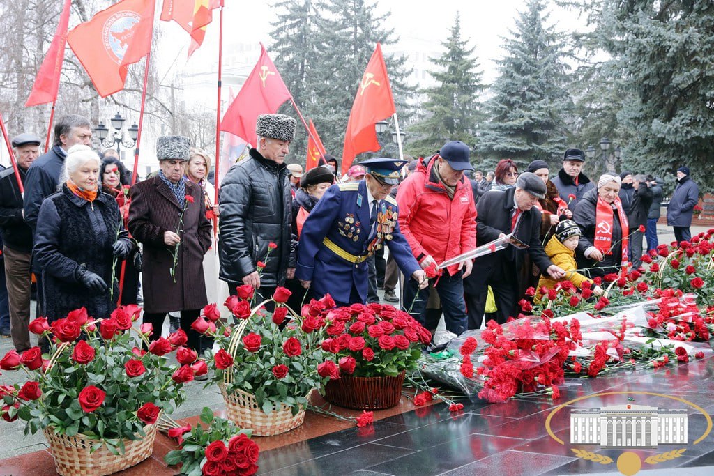 Собравшиеся почтили память погибших героев минутой молчания и возложили цветы к мемориалу.