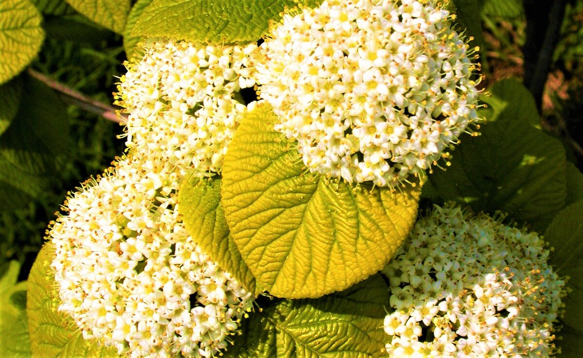 Среди множества видов кустарников выделяются такие, как Калина гордовина сорта Ауреум (Viburnum lantana 'Aureum'). Эта красавица привлекает внимание золотистыми листьями с крупной морщинистой текстурой и отличается хорошей устойчивостью к различным условиям. Высотой она достигает 2,5 метров и растет даже на бедных почвах, прекрасно переносит как солнечные, так и тенистые участки.