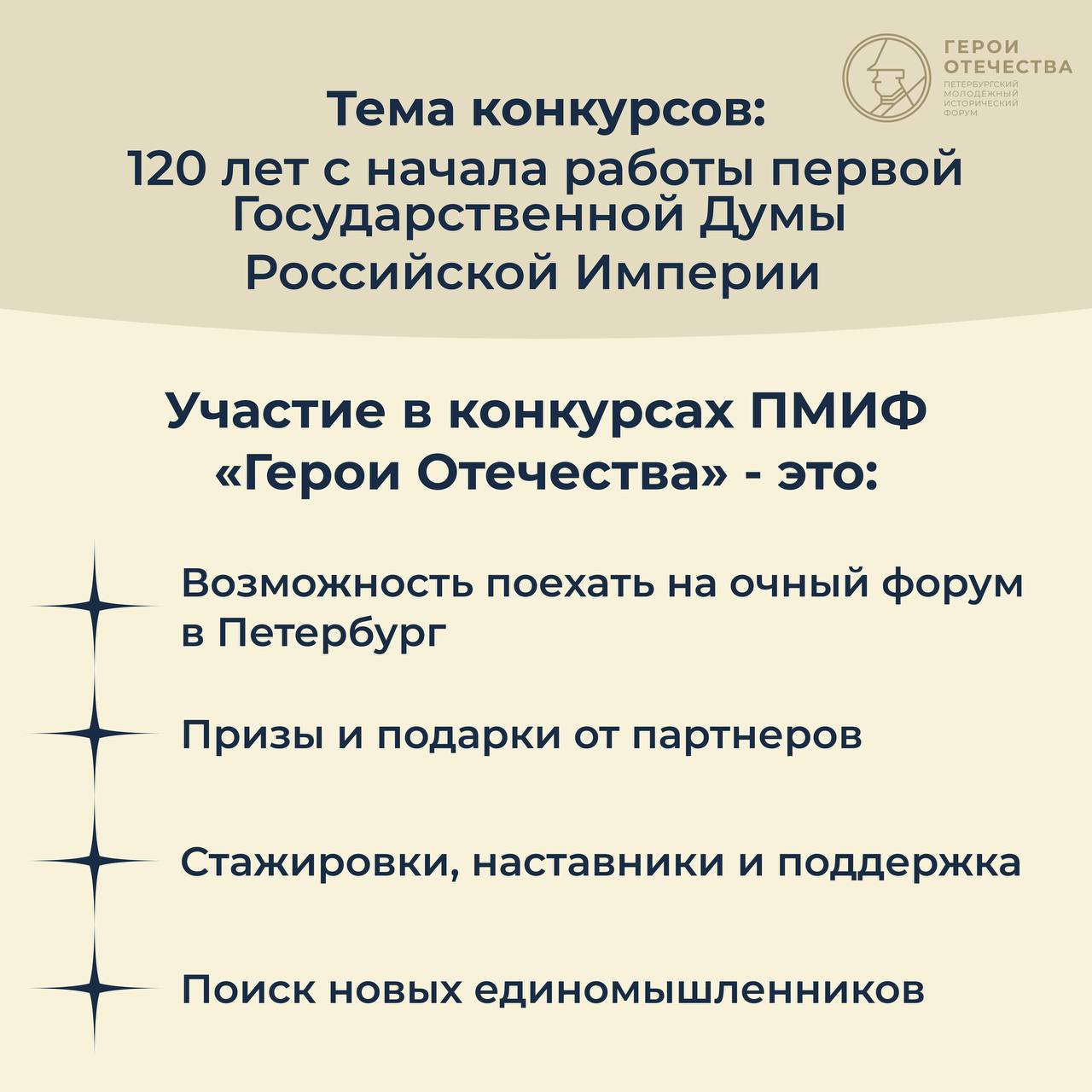 В мае 2026 года состоится V Петербургский молодежный исторический форум «Герои Отечества», который реализуется АНО «Герои Отечества» при поддержке Фонда Президентских грантов, Федерального агентства по делам молодёжи, Российского исторического общества, Движения Первых, депутатов Государственной Думы и сенаторов Российской Федерации.