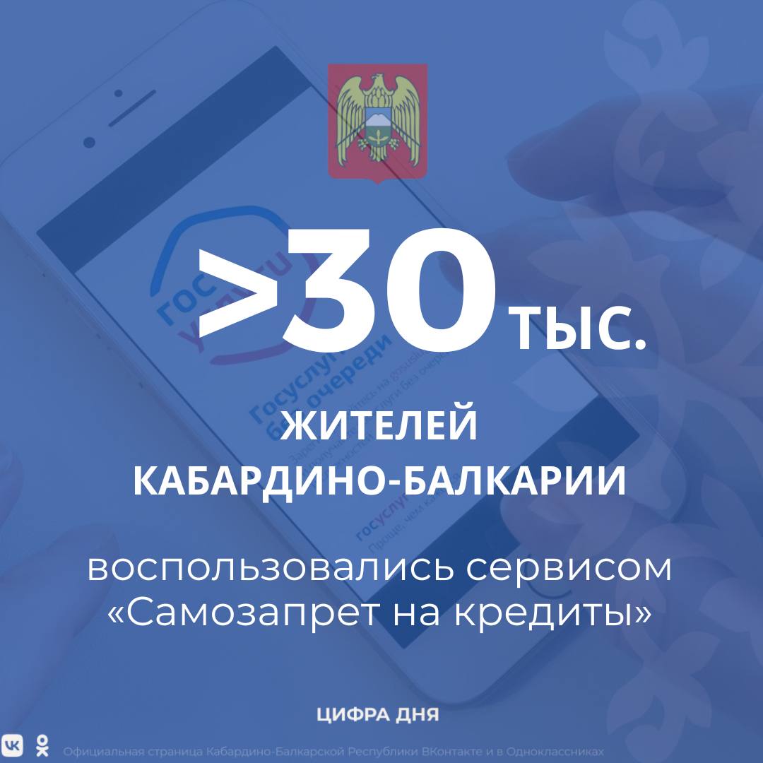 Сервис начал работать в прошлом году. На сегодняшний день более 30 тысяч жителей Кабардино-Балкарии уже воспользовались самозапретом на оформление кредитов.