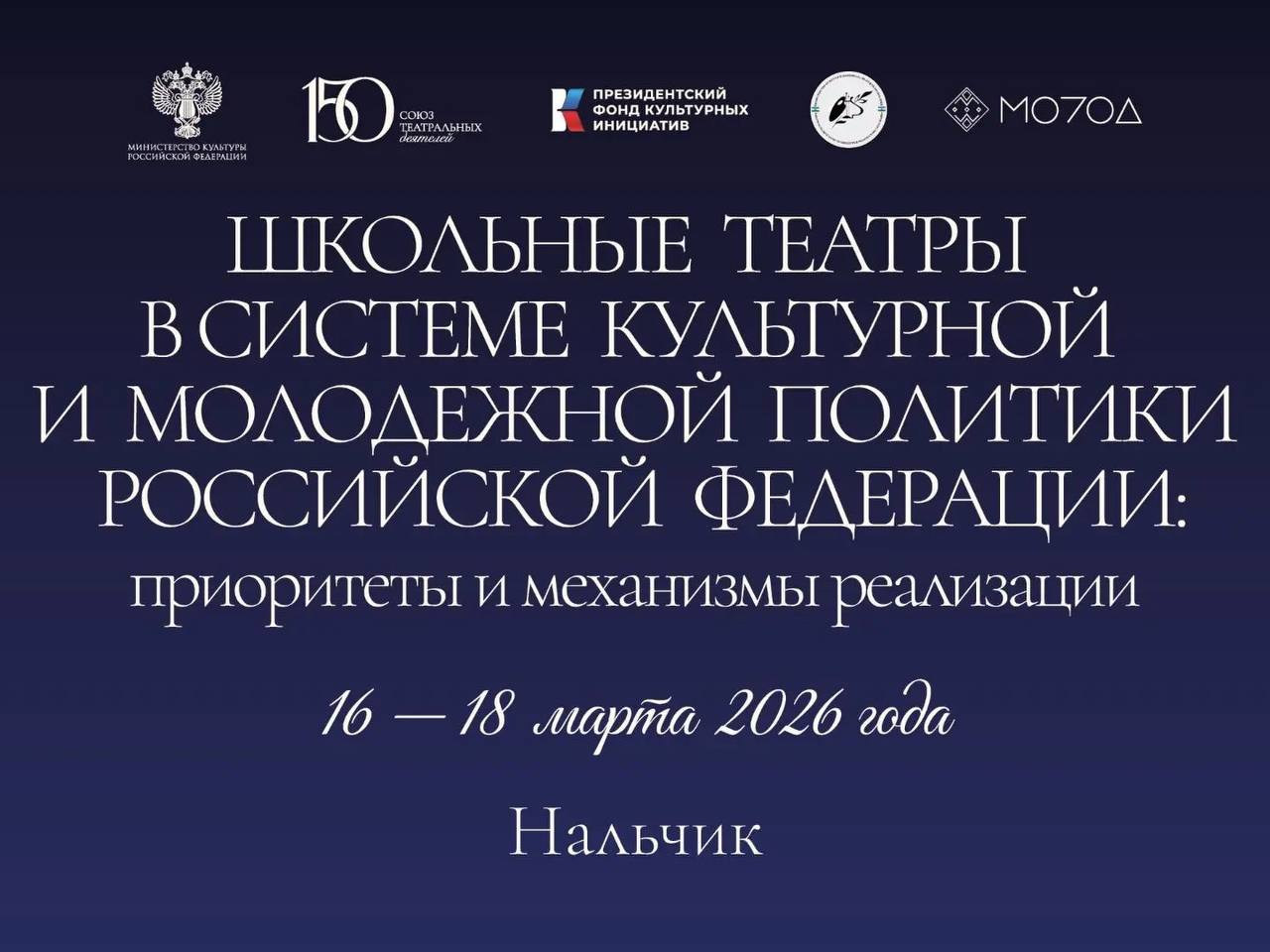 С 16 по 18 марта в Нальчике в Доме молодежи, состоится Театральный форум «Школьные театры в системе культурной и молодежной политики Российской Федерации: приоритеты и механизмы реализации», организаторами которого выступает Союз театральных деятелей России.