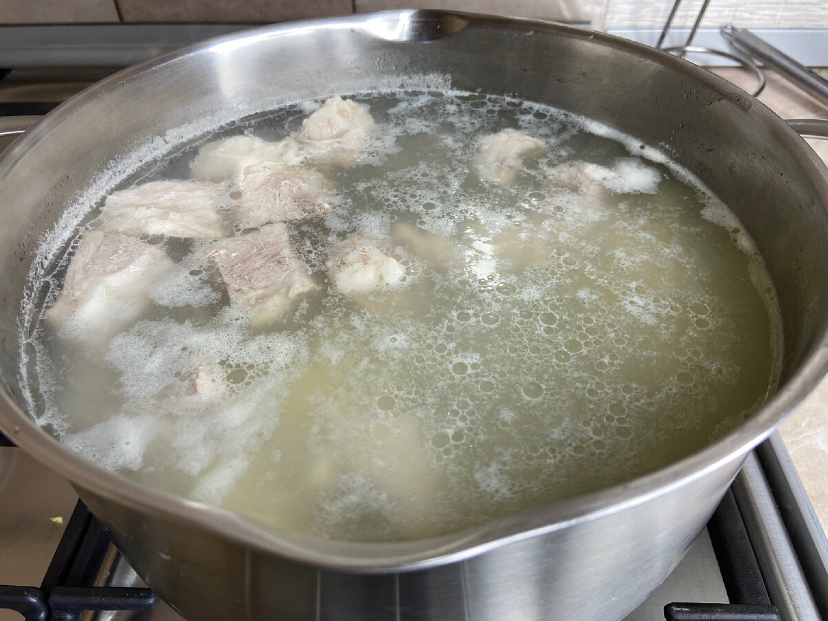 Приготовление супа-соуса – это просто и быстро. Все начинается с варки мяса: можно взять любое, что найдется в холодильнике. В данном случае используется мякоть свинины.