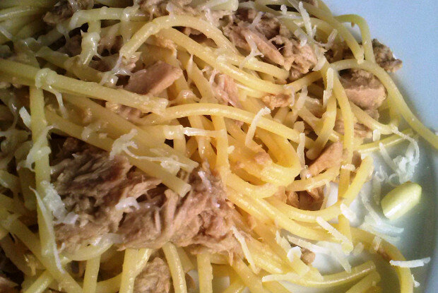 Как только спагетти готовы, их выкладывают в сковороду с обжаренной тунцом и чесноком смесью. Все хорошо перемешиваются и держатся на огне еще пару минут, чтобы пропитаться ароматами.