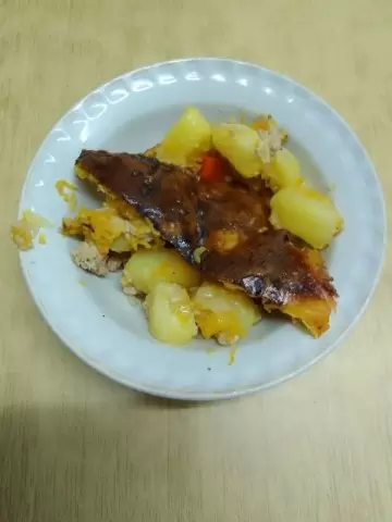 Нарезанные кубиками тыква и перец добавляют цвет и мягкость, картофель держит структуру и насыщенность. Мясо быстро обжаривают с луком, чтобы запеканка получилась сочной и ароматной, а затем чередуют слои с овощами и заливкой из молочных яиц. Запеченная смесь достигает золотистой корочки, сохраняя внутреннюю мягкость.