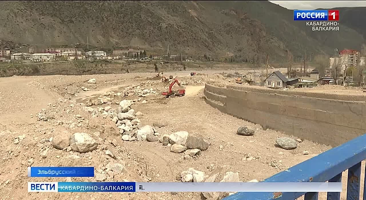 В Тырныаузе расчищают русло реки Герхожан-Суу от селевых наносов