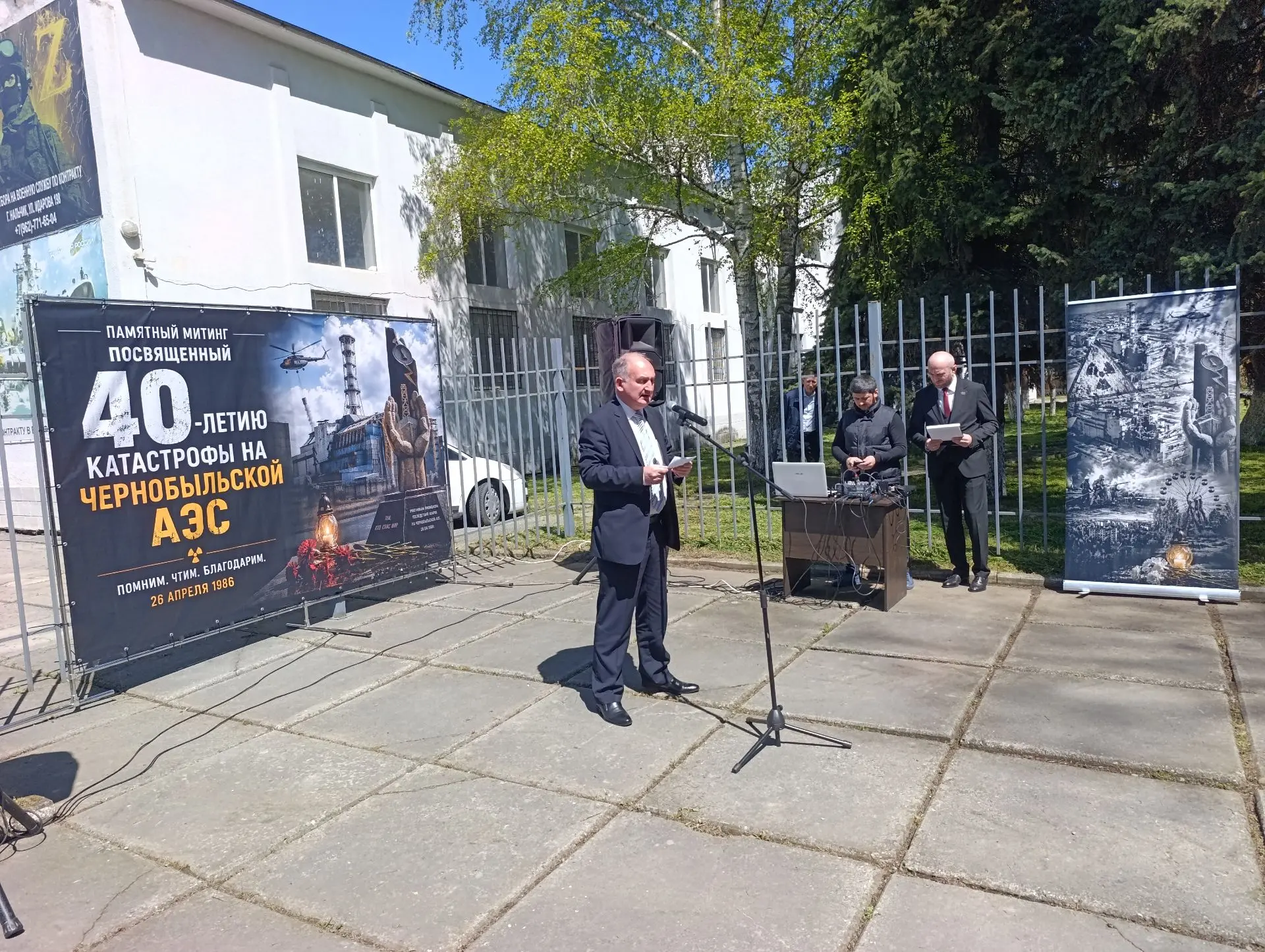 Сегодня в Нальчике, в сквере возле Республиканского военкомата, состоялся памятный митинг, посвященный 40-летию аварии на Чернобыльской АЭС, сообщает корреспондент РИА «Кабардино-Балкария».